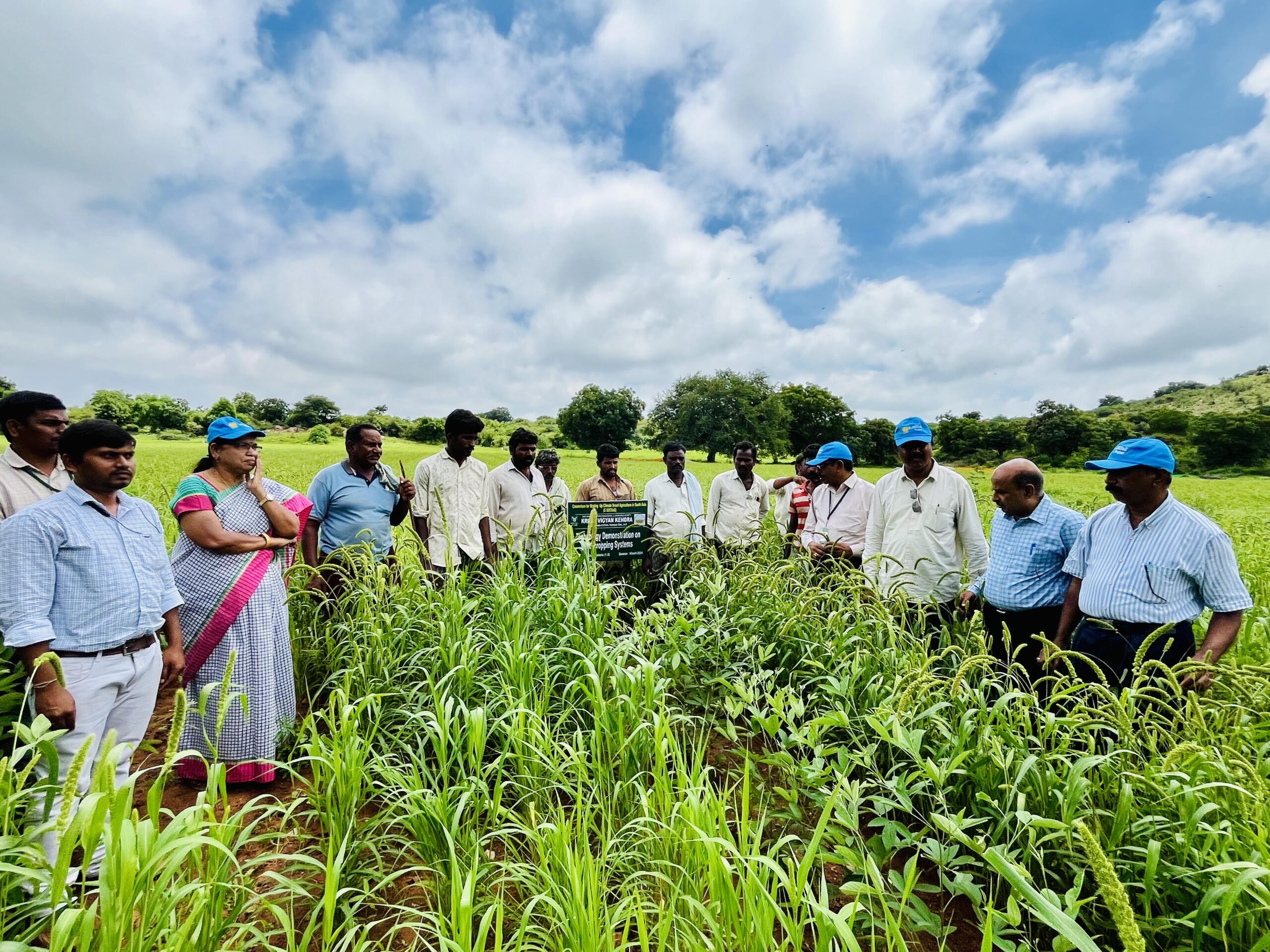 The first field visit took RPC and NFP to Yagantipalle Krishi Vigyan Kendra in Andhra Pradesh. Here, they witnessed the practical application of CSA technologies in action. The farmers were engaged in intercropping systems, combining Redgram with Setaria Italica (foxtail millet), to enhance production and build resilience against the impacts of climate change. The team interacted with both scientists and farmers, discussing the progress and impact of the project. The farmers expressed their satisfaction with the support received and eagerly voiced their desire for larger-scale projects in the future.