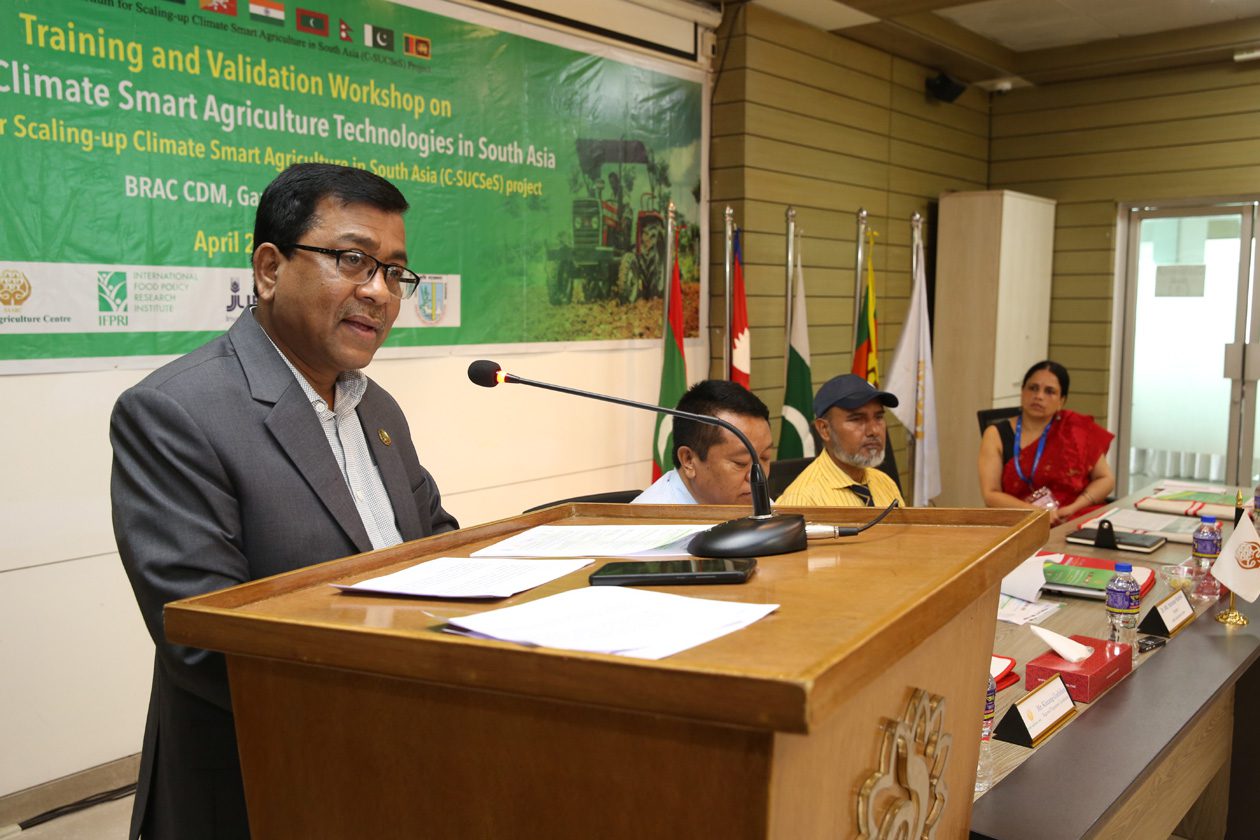 Dr. Md. Harunur Rashid, Director of SAARC Agriculture Centre said ‘We all know that South Asia is one of the world’s most vulnerable regions in terms of climate change impacts. Agricultural production in the region is severely constrained by extreme climate events whose frequency has increased in the past few decades. In light of these challenges, scaling up climate smart agriculture practices has become crucial to enable farming communities to adapt to climate change and enhance their resilience to its effects’.  He also added, ‘several primary obstacles that impede the expansion of climate smart agriculture technologies in South Asia are the lack of access to technology, policy and institutional constraints, and the lack of awareness about CSA at local, provincial, and national levels. To address some of these barriers and strengthen the capacity of Member States, SAC and IFPRI with the Bangladesh Agricultural Research Institute have partnered to organize this important training and validation workshop.’
